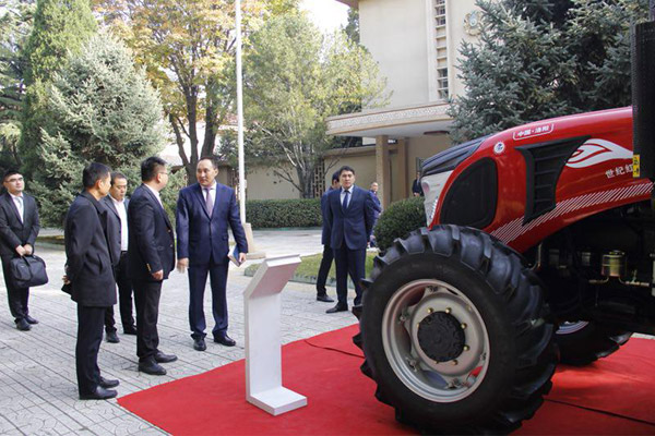 11月7日,哈萨克斯坦副总理兼农业部部长梅尔扎赫梅托夫与洛阳世英机械制造有限公司董事长李世英,在哈萨克斯坦驻华大使馆洽谈合作事宜。这也是中国拖拉机首次驶入哈萨克斯坦驻华大使馆,标志着洛阳世英机械制造有限公司将借力于国家一带一路政策的东风为开辟中亚市场奠定了基础,并开启新世英、新时代的篇章。